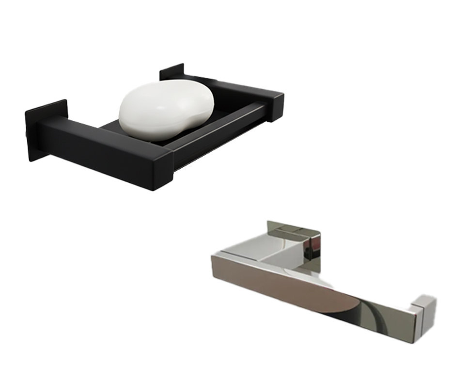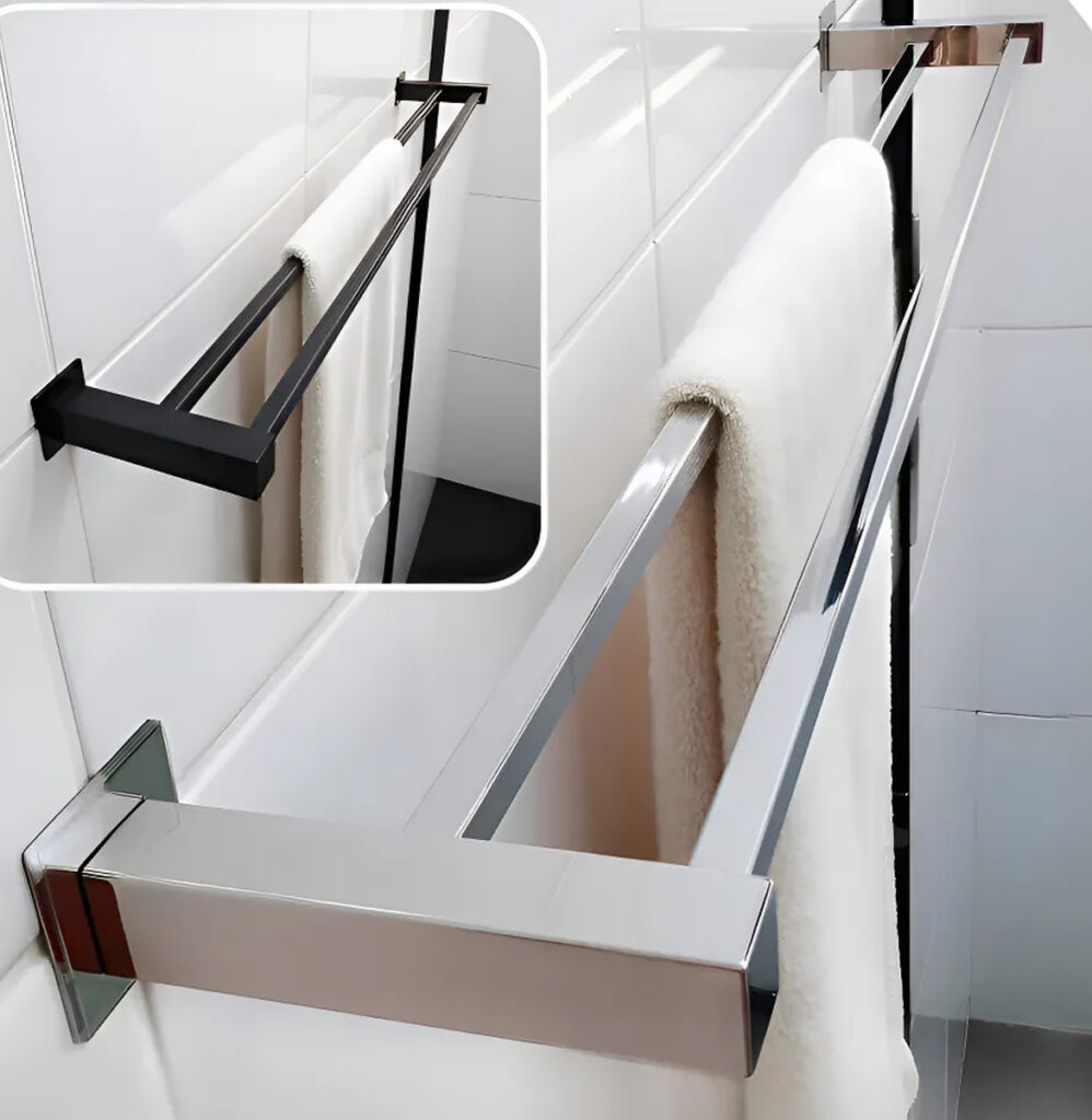 Toalheiros simples e duplos com acabamento polido ou preto fosco.